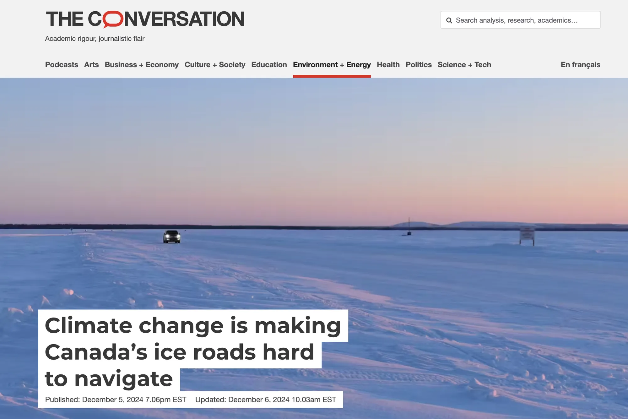 For many northern communities, ice roads are essential for accessing things like food and fuel. But climate change is causing them to be less reliable, and often unsafe. Homa discussed this