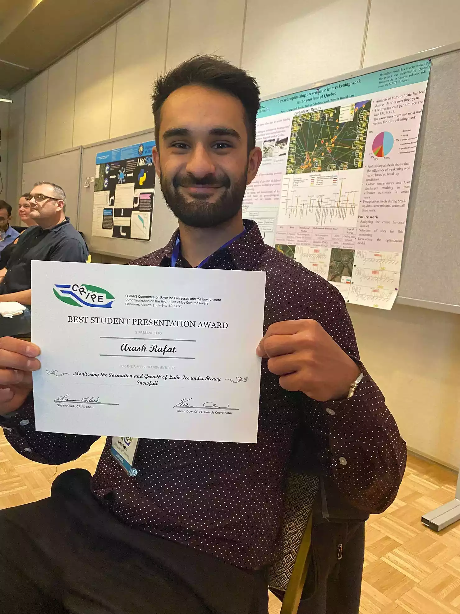 Congratulations to Arash for winning the Best Presentation Award at the 27th IAHR International Symposium on Ice